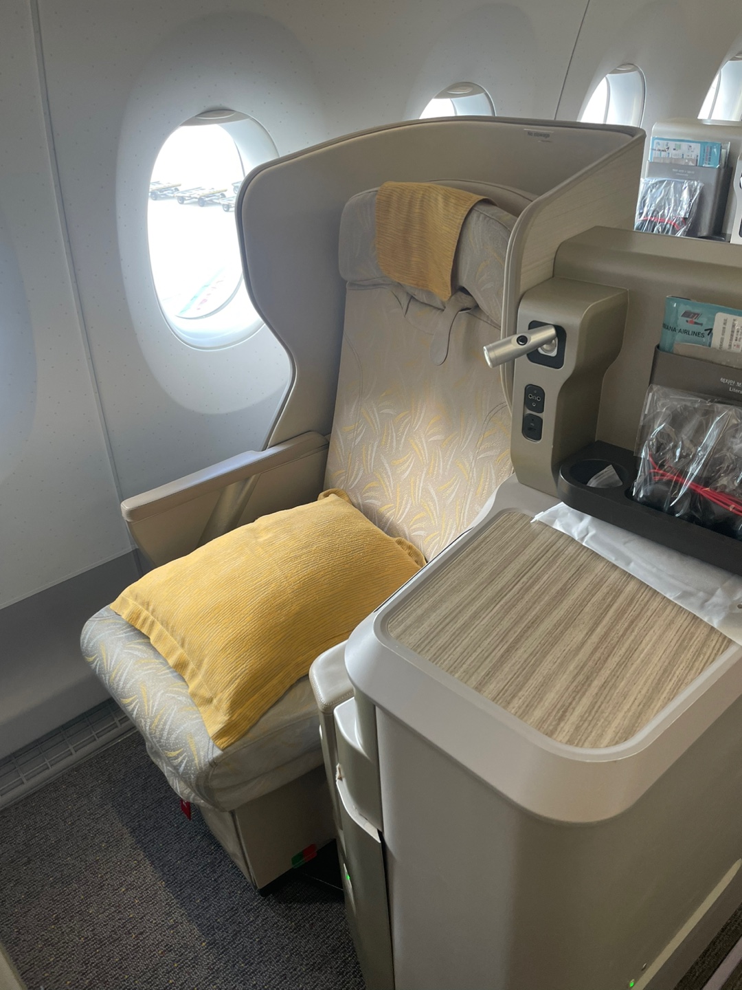 라운지 투어를 마치고 탑승 게이트로 향합니다 탑승 게이트는 8번으로 1 터미널 동편 끝쪽이었습니다. 실버크리스 라운지에서 여유롭게 나와서 천천히 걸어갔습니다 아시아나 항공 A-350 나름 아시아나 항공 꽤나 여러 번 타 보았지만 신기하리만치 350과는 인연이 없었는데 이렇게 첫 탑승을 하게 됩니다 오늘의 탑승 좌석 2K 비즈니스 스마티움 스마티움은 첫 탑승이라 기대를 많이 했습니다. 좌석 지정도 미리 프라이빗한 창가로 해놨습니다. 비즈니스 스위트를 제외하면 아시아나 항공에서 가장 좋은 좌석. 747의 구 일등석인 로열 비즈니스가 있지만 그보다 더 프라이빗하고 신식인 점이 제게는 더 큰 장점으로 와닿습니다. ‘ 담요와 슬리퍼 헤드셋등이 준비되어 있습니다. 중거리 비행이기에 어메니티는 제공되지 않습니다. 담요를 가져갈 수 없는 점이 아쉬웠네요 좌석 조정 컨트롤과 리모트 컨트롤이 있습니다. 직관적으로 되어있어서 조정하기에 아주 편리했습니다. 웰컴 드링크는 샴페인, 오렌지 주스, 물을 제공하여 오렌지 주스를 선택했습니다. 메뉴판을 보면서 이륙준비를 합니다. 영원히 바뀌지 않을 아시아나의 세이프티 비디오. 식사는 양식으로 주문했습니다. 별생각 없었던 퀴노아 샐러드는 괜찮았고 기대했던 스테이크는 질긴 편이었습니다. 생각보다 훨씬 맛있었던 치즈와 디저트 와인 기억에 남는 디저트였습니다. 하겐다즈는 뭐 언제나 저를 만족시켜 주는 맛입니다. 노을이 지는 것을 보고 라면을 시킵니다. 삼양라면, 진라면, 신라면 중 선택 가능하여 삼양라면으로 선택하였고 과거 아시아나 항공 일등석 탑승 때 먹었던 기내 라면 이후로 두 번째였는데 이번 라면은 삼양라면 컵라면의 향기가 상당히 짙게 느껴지는 식사였습니다. 간단히 출출할 때 배채우긴 좋으나 확실히 끓인 것과는 차이가 있어 조금 아쉽긴 했습니다. 풀플랫으로 펼쳐지는 좌석 담요도 따뜻하고 터뷸런스가 거의 전무했던 비행이어서 너무 잠도 잘 잤습니다. 발 놓는 부분이 좁다고 하시는 분도 계시던데 저는 그 정도는 아니었습니다. 약 6시간 정도를 날아 싱가포르에 도착합니다. 이제 환승 10시간 50분을 견디러 싱가포르 실버크리스로 가봅니다.