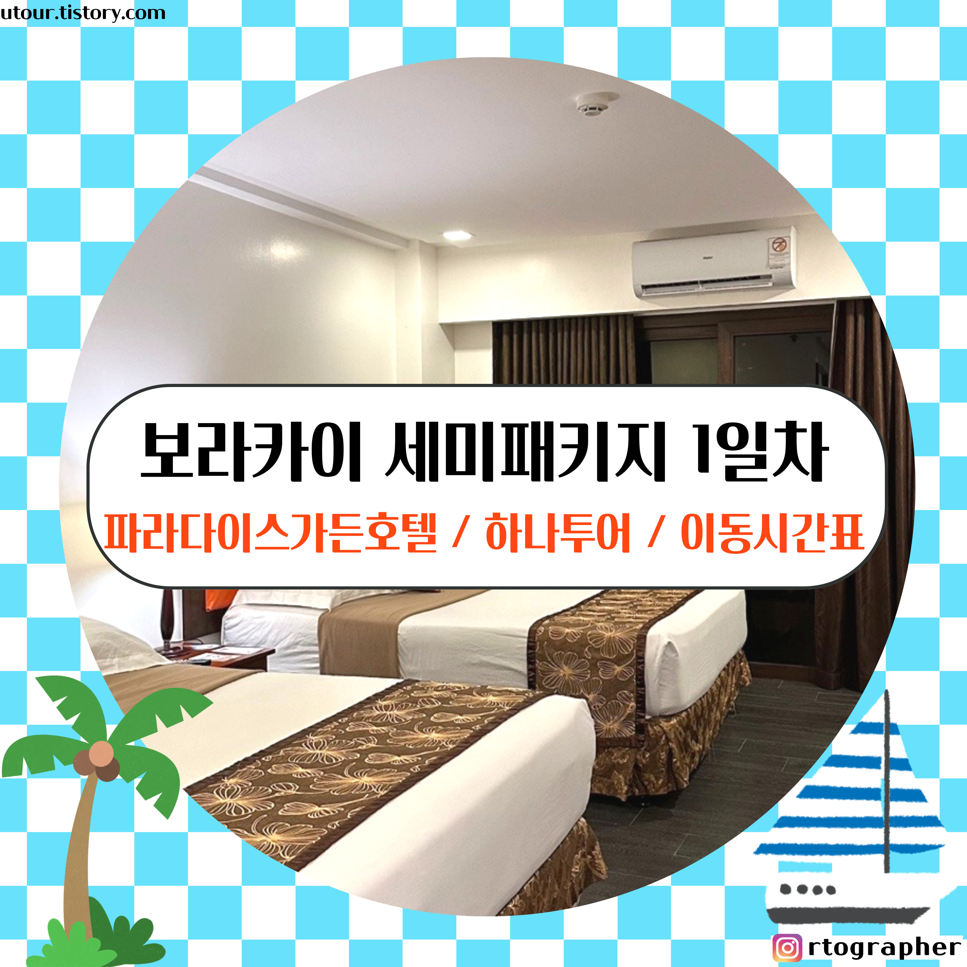 보라카이 세미패키지 부산출발 부산에어 1일차 파라다이스가든호텔 안녕하세요. 2024년도 첫 여행은 보라카이로 갔다 왔습니다. 부산출발 보라카이는 “부산에어” 단 1개만 있습니다. 시간대는 부산 PM 8:35분 출발 / 한국도착 AM06:30분이 되겠습니다. 직장인분이시라면 평일 5시 퇴근 후 바로 출발 또는 6:30분 도착 후 9시 출근 일정이면 연차를 아껴서 사용하고 갔다 올 수 있습니다. 이번 여행도 아주 상세히 소개드릴테니 도움이 많이 되었으면 좋겠습니다. 부산출발 → 보라카이섬 상세한 소요시간 06:00 김해공항도착 최소 2시간 전 도착 / 여행사 미팅 08:35 출발 (김해공항) 12:10 도착 (칼리보공항) 12:30 버스 탑승 1시간30분 소요 / 패키지 일행 기다리는 시간 많이 소요 14:20 항구 도착 보라카이 섬 출발 (소요시간10분) 15:00 보라카이섬 도착 15:10 파라다이스 가든 호텔 도착 “부산에어 체크인” 출발당일 12:00:00AM 에 시작됩니다. 보라카이 세미패키지 부산출발 부산에어 1일차 파라다이스가든호텔 칼리보공항 도착 후 보라카이섬 까지 가는 것은 자유 개인적으로 가는 것은 힘들어요. 패키지를 이용하시거나 / 자유여행으로 가셔도 픽업패키지가 있으니 구매하셔서 가세요~ 부산출발은 새벽도착이라 개인으로 들어가는 것은 무리입니다. 보라카이 세미패키지 부산출발 부산에어 1일차 파라다이스가든호텔 저는 패키지로 갔기 때문에 버스이동을 하였습니다. 버스 타기전에 현지가이드가 1인당 물 1병씩 제공이 되었어요. (다른 패키지는 안 줬다고 해요! 복불복!! ) 새벽시간에도 불구하고 하나투어 브라운 가이드님께서 패키지 일정, 옵션, 주의해야 할 점에 대해서 아주 상세히 잘 알려주셨어요. 동남아 패키지중에서 가이드 좋은 분 만난 적은 없었는데 보라카이는 진짜 대만족이었습니다. (특히 태국가이드는 옵션강요, 쇼핑센터 강요 너무 심했음) 보라카이 세미패키지 부산출발 부산에어 1일차 파라다이스가든호텔 보라카이 까지 가는 배는 10분 이내로 소요됩니다. 안전하게 구명쪼끼도 다 구비되어 있고, 자리좌석도 다 있습니다. “여기서 꿀팁” – 배 앉을때 맨 뒷자리는 비추천 (엔진오일냄새 심함) 보라카이 세미패키지 부산출발 부산에어 1일차 파라다이스가든호텔 배를 타고 파라다이스가든 호텔에 도착하였습니다. 호텔은 화이트비치 조식뷰, 실내수영장 2곳, 워터슬라이드, 포켓볼, 밤 되면 펍 이렇게 되어있었습니다. 자세한 호텔 정보는 내용이 많아 따로 포스팅 작성하도록 하겠습니다. 보라카이 패키지 1일차 후기 – 비행 4시간은 괜찮음 – 버스, 배 이동에 있어서 대기시간이 조금 긴 편 (패키지인원에 따라 다를 수도 있는 점) – 저녁에 호텔 도착 후 24시 음식점을 갔는데 대부분 ONLY CASH여서 못 먹었음…. (공항 바로 옆 환전소 소량환전 추천)