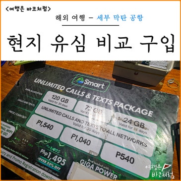 안녕하세요, 이번에 필리핀 세부로 여행을 다녀온 후기로 찾아온 여행 블로거 파블로 바코입니다. 벌써 올해 들어서 해외여행을 보라카이에 이어서 필리핀 세부로 2번째 해외여행을 떠나게 되었어요. 첫번째 여행 때는 유심, e 심을 한국에서 구매해서 갔는데 영 터지는 것도 시원치 않고 해서 이번에는 현지에 와서 구매해야겠다 생각을 하고 왔거든요. 그래서 이번에 세부 막탄 공항에 도착해서 바로 세부 현지에서 유심 가격을 보고 직접 구매해서 사용해 본 이야기해 볼게요. 필리핀 세부 막탄 공항 🎈 주소 : Lapu-Lapu Airport Rd, Lapu-Lapu City, 6016 Cebu, 필리핀 📞전화 : +63 32 340 2486 ⏰ 운영시간 상시 1. 세부 막탄 공항 새벽 도착 이번에 필리핀 세부 여행을 계획하면서 밤 출발해서 새벽에 세부 막탄 국제공항에 도착하는 여정이었습니다. 제주항공을 타고 4시간 20분 정도를 비행해서 도착하니 세부 시간으로 12시가 넘은 새벽 시간이더라고요. 솔직히 이런 새벽 시간에는 우리나라도 많이 운영되는 식당이나 점포들이 없는 듯해서 새벽에 유심 구매 가능할지 걱정도 되더라고요. 얼른 공항 수속을 마치고 캐리어를 찾아서 세부 공항 밖으로 향해서 나갑니다. 2. 현지 유심 사는 곳 우선 새벽 늦은 시간이기도 했고 되도록 빨리 나가서 유심을 구매하려고 나가는 곳을 찾아서 밖으로 빠르게 나갑니다. 와~ 공항 밖으로 나갔는데 새벽인데도 불구하고 많은 가이드분들이 오신 분들을 찾고 있는 모습이더라고요. 여기서 저희는 유심을 구매하려고 오른쪽이 아니라 왼쪽으로 있는 길 따라 이동했어요. 이렇게 이동해서 보시면 세부공항 현지 유심을 판매하는 Smart와 Globe 매장 이렇게 두 곳을 볼 수가 있답니다. 3. 현지 Smart 유심 우선 도착하자마자 저희처럼 세부 공항 현지에 유심을 사러 각각의 부스로 바로 오신 분들이 꽤나 있으시기 때문에, 되도록 나오시면 바로 부스로 향하시는 것이 빠른 유심 이용을 위해 좋은 방법이라 생각됩니다. 저희는 스마트나 글로브 둘 다 현지에서 터지는 것은 비슷한 걸로 미리 알아보고 왔기에 먼저 있는 Smart 부스에 줄을 서서 기다렸어요. 제가 줄을 서서 기다리는 동안 해마가 옆에 글로브 부스랑 가격비교를 해왔는데 크게 차이가 없어서 어디에서 구매하셔도 가격적인 부담은 거기서 거기다 싶었어요. 솔직히 가격차이가 비슷한 용량과 일수로 보면 Smart와 40페소 정도 차이라 둘 다 데이터 터지는 것은 비슷하다는 가정하에 40페소는 900원 정도로 줄이 적은 곳에서 구매 하시면 될 것 같더라고요. 4. 유심 가격 스마트에서 유심을 구매하려고 줄을 서서 기다린 후 얼마 되지 않아서 차례가 와서 솔직히 데이터 걱정 없이 여행을 해야겠다 싶어서 15일 24GB로 신청했다는 사실…ㅋㅋ 두 명이서 하니까 1,080페소였는데 실제로 한 사람당 12,000원 정도의 유심 가격을 주고 구매했습니다. 요금제를 고르고 구매의사를 말하면 바로 직원분께서 여권과 폰을 달라고 하시고 바로 개통을 빠르게 진행해 주십니다. < 필리핀 현지 유심 개통 시 여권 필수 > 이렇게 저희 두 개의 폰을 자리에 놓고는 양쪽으로 손을 바쁘게 움직이면서 두 개를 한 번에 개통하고 계신 능력자 직원분.. ㅎ 실제로 결제 후 폰을 드리고 나면 개통까지는 약 5분 정도가 걸려서 딱 개통이 완료되더라고요. 사실 유심만 받고 개인이 개통을 할 수도 있지만 현지 언어와 영어를 보면서 하나하나 입력하고 하는 부분들이 여간 까다로운데, 직원분이 빠르게 해주시니 너무 편했습니다. < 한국 유심은 따로 챙겨주시니 잘 챙겨야 해요!> 이렇게 개통을 하고 나니 데이터도 공항 근처에서는 빵빵 잘 터지고, 픽업 기사님을 만나러 가서 본격적으로 세부 여행을 시작했답니다. 5. 세부 현지 유심 이용 후기 이번에 세부 공항에서 현지 유심을 이용해 보니 한국에서 직접 이용하는 것과 가격차이도 별로 없는데 현지 번호도 받아서 편하게 이용할 수 있었답니다. 다만 유심이 어딜 가나 안 터지는 곳은 잘 안 터지는 것은 비슷했고 시내에서는 대부분 잘 터져 크게 걱정 없었어요. 저는 다시 필리핀 세부를 방문하더라도 현지에서 유심을 구매해서 세부 여행 내내 데이터 걱정 없이 사용할 것 같습니다! 막탄 세부 국제공항 Lapu-Lapu Airport Rd, Lapu-Lapu City, 6016 Cebu, 필리핀