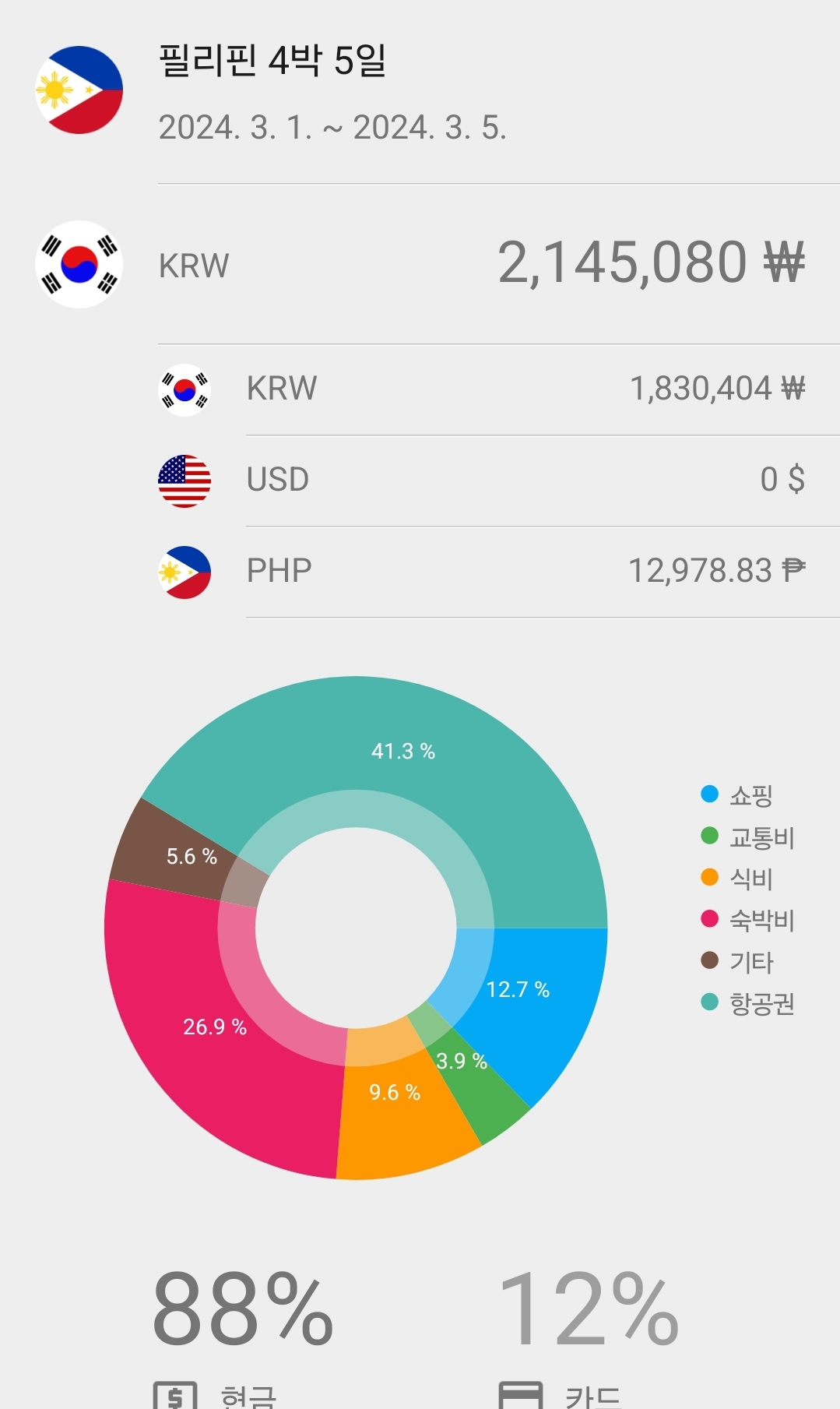 아기랑 언제 첫 해외여행을 할까 고민을 많이 하실텐데, 저는 18개월 아가랑 첫 해외여행은 다낭으로 다녀왔고, 23개월 아가랑 두번째 해외여행은 세부로 다녀왔습니다. 코로나 이후 2번째 여행이라서 항공권 비용, 리조트 비용 등이 감이 안 와서, 공유하는 차원에서 관련 내용정리하여 올립니다. 0. 일정 어린 아기랑 함께하는 여행에는 일정은 없습니다. 부담감을 내려놓으시길 바랍니다. 저희는 첫 여행인 다낭에서 아가가 아팠어서, 거의 내려놓고 그냥 숙소에서 요양했습니다. (참고로 우기였고, 비가와서 호이안도 못 갔었습니다.) 이번 두번째 여행에서도 별도의 일정을 정하고 간 것은 없습니다. 정말 리조트 콕을 생각하고 갔습니다. 신랑은 물놀이를 좋아해서 반나절 호핑 투어를 고민했는데, 제가 물을 무서워해서 보류하자 했습니다. 1. 항공권 사실 저희는 3월에 여행 계획이 없었습니다. 기존에 대만 가족 여행을 2박 3일 고민해서 티케팅 했다가 취소를 했는데, 왜 갑자기 예약을 했느냐;; 바로 그건 항공권 가격~!! 생일을 기준으로 두돌 전에는 유아운임이 부과되지만, 그 이후에는 소아운임이 부과되어 성인 요금기준의 6~80%정도 부과된다는 사실~!! 여름휴가를 어디로 갈까 검색해보던 중에 티켓 가격을 보니, 3월 내로 가야겠다 싶었고, 일전에 신랑이 세부를 얘기해서 항공권 가격을 스카이스캐너로 봤는데, 아시아나가 90만원대, 댄공은 100만원대라서 나쁘지 않아서 아시아나 홈페이지로 들어가서 예약을 했습니다. (저희는 약 2개월 전에 예약) 성인 2명이 약 86만원, 아가는 약 2.7만 총 비용 88만 5천원 24년 3월 세부 항공권 가격 아시아나 기준, 성인 1인 약 43만원 우선 저희가 LCC가 아니었고, 국적기의 경우 4~60만원이라고 해서 진행하기로 했습니다. 2. 숙소 숙소를 찾아보기로 했습니다. 이런저런 검색을 해보는데, 뭐랄까 숙소가 생각보다 저렴하지가 않았습니다. 사람들이 많이 가는 숙소인 샹그릴라가 대충 1박에 43만원, 제이파크가 26만원 그런데 문제는 대체적으로 후기가 돈 값을 못한다는거 입니다. 즉 가성비가 떨어진다;; 처음 고민했던건 제이파크와 크림슨리조트였는데, 제이파크에서 침구가 축축했다는 후기를 보고나서.. 아, 뭐지 싶었습니다;; 0.5박 호텔 저렴한건 5~6만원대, 근데 방음이 취약하데서 버리고, 그 다음 찾아본게 10만원대.. 리조트 3박에 앞뒤로 0.5박 호텔을 붙이면.. 못해도 돈 100은 되겠네 싶더라고요, 세부 관련 카페서 찾아보니, 어떤 리조트가 자정 체크인 오후 10시 체크아웃이고 리조트 내에서 사용가능한 캐시 바우처도 준다길래, 해당 카페에 가입해서 알아봤습니다. 제가 견적을 문의했을 때 해당 일정의 숙소가격은 대충 60만원 전후이고, 리조트 내에서 사용할 수 있는 캐시카드가 P6,000(약 14만원)가 포함이었기 때문에 세부 가성비 리조트 맞구나 싶었습니다. 블루워터 마리바고 밤밤팩-캐시카드 P6000포함 (00시체크인 22시 체크아웃) 아무마 리노 3박 약 57만원 물론 가기 전에 찾아본 단점으로 침구가 축축하다와 룸타입에 따라 다르지만, 해변 가까운 숙소는 모래때문에 힘들었다는 얘기와 소음 관련 된 얘기, 조식이 맛이 없다 등 3. 총 비용 항공권에는 약 88.5만원, 숙박비는 약 57.6만원을 사용했습니다. 식비는 약 20만원(현지), 만약에 리조트에서 사용한 캐시카드까지 포함하면 약 35만원(현지) 인천공항 라운지 이용 5.2만원 마사지는 약 2.5만원(신랑, 나 1번씩) 쇼핑에는 면세점 쇼핑, 사무실 선물 등 약 27만 교통비 현지에서 약4만원, 국내에서 약 4만 7천원 저희가 별도의 투어를 안 한것도 있고, 첫 여행보다는 정말 덜 힘들어서 마사지를 계속 받지 않은 탓도 있어서, 세부 물가를 감안하면 정말 저렴하게 다녀온 것 같기는 합니다. 이상으로 올해 3월 초에 다녀왔던 23개월 아기랑 세부 3박 5일 여행경비 공유한 글을 마칩니다. 각자의 상황에 맞게 여행 계획하시고, 즐거운 여행 하세요~