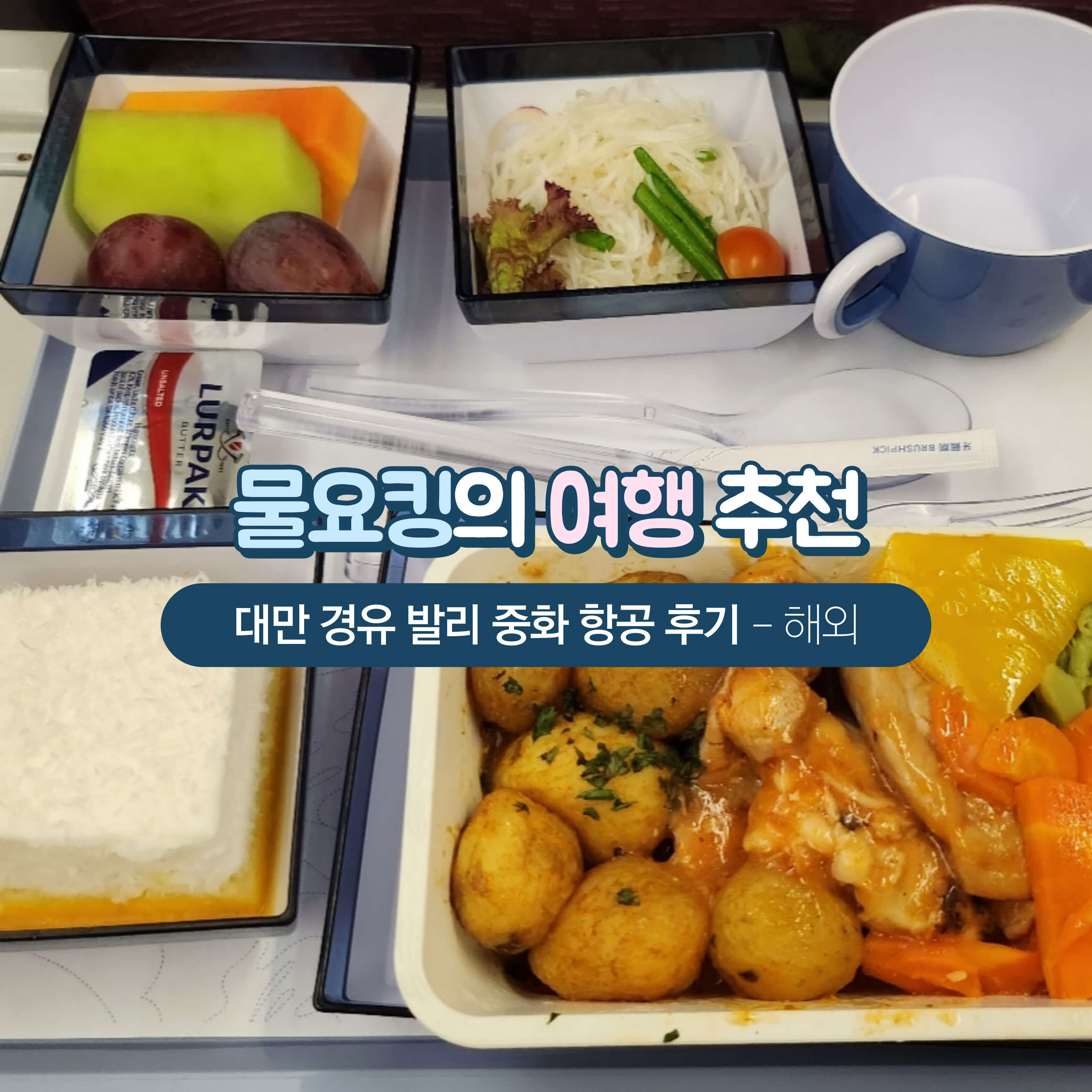 중화항공 발리행 후기 – 중화항공 대만 경유 발리 여행 안녕하세요~ 오늘은 처음 쓰는 종류의 글인 것 같아요. 바로 항공 후기인데요! 중화항공 들어보셨나요? 저는 이번에 발리 여행을 계획하면서 처음 알게 되었는데 대만의 국적기라고 하더라구요. 국적기는 제법 괜찮은 컨디션과 서비스를 보여주었기에 저희는 망설임없이 선택하게 되었어요. 저희는 부산에서 출발하기 위해 김해-대만-발리로 향하는 대만 경유 항공권을 발권하였습니다. 대만 구경도 하고가면 오히려 좋지! 생각했는데 생각보다 경유가 상당히 피곤하더라구요? 그리고 대만 체류 시간이 짧다보니 더더욱 곤란하였습니다. 그래도 나름 반나절이라도 대만구경을 할 수 있었던 중화항공 후기 지금부터 시작하도록 하겠습니다. 중화항공 발리행 후기 – 중화항공 대만 경유 발리 여행 저희 항공 스케줄은 위와 같았습니다. 김해-대만 일정을 시작으로 대만에 오후 1시 40분에 도착해서 체크인하고 하루 정도는 놀 수 있겠다 생각했는데, 세상에 대만 공항에서 좀 헤매고 체크인하고 숨 좀 돌리니 이미 한나절이 지나갔더라구요. 대만에 대해 크게 알아보고 오지도 않은 터라 더욱 시간이 부족했어요. 다행히 타오위안 공항 근처 노보텔을 숙소로 잡아두었기에 지하철이 인근에 있어 근처에 다녀오긴 좋았습니다. 막무가내 여행을 하다 대만 현지 맛집도 알게 되고 대만의 상징인 버블티도 먹고 아주 즐거운 시간이었어요. 반나절 쉬고 숙소로 돌아와 발리까지 5시간 30분이 걸려요. 오후에 발리에 떨어져 짱구까지 이동하는데 발리 트래픽 장난 아닙니다…하하하 또 한시간 이상을 소요하여 짱구 숙소에 오니 저희는 녹초가 되었습니다. 돌아오는 일정은 발리-대만으로 대만에 밤 9시 넘어 떨어지기 때문에 바로 취침 후 아침 일찍 비행기를 타고 부산으로 복귀하는 일정이었어요. 중화항공 발리행 후기 – 중화항공 대만 경유 발리 여행 대한항공 마일리지 적립 중화항공은 대한항공과 스카이팀 제휴가 되어 있어 마일리지 적립이 가능해요. 하지만 예약 등급에 따라 적립률이 상이하고 심지어는 적립 불가가 훨씬 많답니다. 저희는 왕복 모든 전 일정이 N이었기 때문에 적립을 하나도 받지 못했어요. 저희는 중화항공 홈페이지에서 신규회원 프로모션 중이었기에 회원가입 후 신규 회원 할인을 받아 왕복 티켓을 예매했어요. 부산-발리 왕복으로 인당 61만 9천원 정도에 예매했어요. 제법 괜찮은 금액으로 예매했죠? 항공권을 알아볼 때 비엣젯과 중화항공을 고민했는데, 비엣젯 극악의 추가 옵션을 생각했을 때 중화항공이 훨씬 저렴하게 느껴지고 가성비 갑이라고 생각되었어요. 왜냐! 위탁 수하물 20kg 1개 제공과 매 노선마다 기내식이 제공되었기 때문이죠. 그리고 좌석에 디스플레이가 배치되어 있어 영화나 오락류를 즐길 수 있어 훨씬 덜 지루하였답니다. 중화항공 발리행 후기 – 중화항공 대만 경유 발리 여행 중화항공 발리행 후기 – 중화항공 대만 경유 발리 여행 중화항공 발리행 후기 – 중화항공 대만 경유 발리 여행 중화항공 이용 시 매 노선마다 기내식이 나오는데, 출국 당시 기내식은 하나도 찍지 않은 저랍니다… 대만-발리 행에서의 기내식이 아이스크림도 나오고 기가 막혔는데 그거 빼먹은 나… 기내식은 토종 한국인인 제가 먹기에 크게 부담없는 맛이었어요. 맛있다! 까진 아니지만 허기를 채우기에 나쁘지 않은 수준이었답니다. 또, 대만이 우롱티가 유명한가봐요~ 아주 다양한 우롱티 쿠키, 음료, 아이스크림 등의 식품을 접할 수 있어 새로웠답니다. 대만 입국 시 꿀팁은 전자 입국 신고서 작성 후 입국 신고할 시 아주 빠르게 통과할 수 있다는 점입니다. 발리는 전자 세관 신고서 작성 후 QR코드를 보여주면 빠르게 통과 가능하고, 줄이 엄청 긴 쪽을 보면 여행비자를 발급받을 수 있으니 그건 현지 도착해서 여행비자 받으시면 됩니다. 저희는 트래블로그로 환전해서 카드결제 했어요! 중화항공 발리행 후기 – 중화항공 대만 경유 발리 여행 중화항공 발리행 후기 – 중화항공 대만 경유 발리 여행 부산-대만 비행기는 3-3-3 구조로, 가장 쉽게 접할 수 있는 좌석 배치였고, 대만-발리 좌석은 2-4-2 좌석이라 훨씬 편하게 올 수 있었어요. 근데 오히려 부산-대만 일정의 비행기가 디스플레이는 훨씬 크고 좋았다는 점… 여러 컨디션의 비행기도 타고, 기내식도 다 누려보고 가성비 아주 훌륭했던 중화항공 부산-대만-발리 항공 후기 였습니다. 이 라면은 발리 스미냑에서 빈땅마켓 구경하다가 컵라면 한번 먹어줘야하지 않겠냐며, 어차피 대만에 밤에 도착하니 야식으로 먹자며 사온 컵라면입니다. 현지에 맞춰 매운 맛이 덜 하겠거니하며 궁금증에 사보았어요. 중화항공 발리행 후기 – 중화항공 대만 경유 발리 여행 중화항공 발리행 후기 – 중화항공 대만 경유 발리 여행 세상에 젓가락을 안 챙긴 거 있죠? 그렇다고 포크라도 챙겼냐? 아뇨 아무것도 안챙겨서 어쩌지 하고 있는데 세상에 컵라면에 포크를 포함해서 판매하더라구요. 유레카를 외치며 포트에 물을 끓여 컵라면을 제조해 맛 보았습니다. 세상에 이런 맛이… 저희 제법 한식